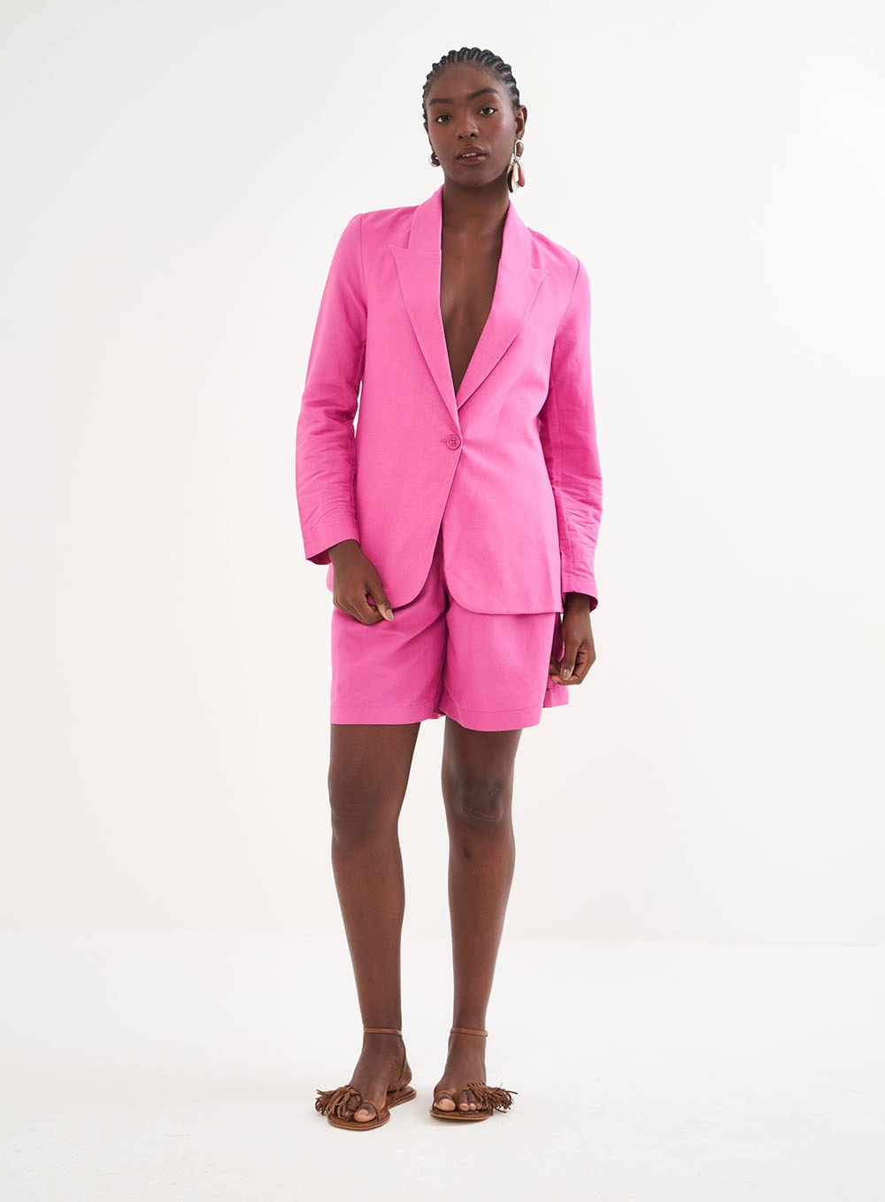 A energia vibrante da primavera ganha forma nesta bermuda que é pura atitude e sofisticação. A peça-chave da coleção Riviera une a elegância da alfaiataria com a leveza do linho em um tom de pink que é a assinatura da estação. É a escolha perfeita para a mulher que usa a cor como expressão, criando looks que são ao mesmo tempo poderosos, refrescantes e inesquecíveis.