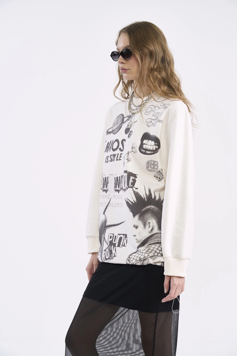 Blusão oversized com estampa gráfica que mistura elementos urbanos e artísticos. Peça versátil que traz personalidade ao seu look casual, perfeita para criar composições descontraídas e cheias de estilo.