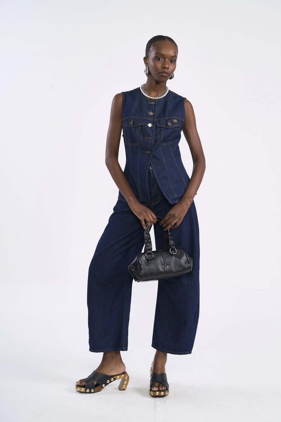 Na coleção Nostalgic, o jeans assume o protagonismo como uma afirmação de individualidade. Esta calça ressignifica a feminilidade urbana, fundindo a rebeldia do movimento punk com a precisão de shapes que transformam. Inspirada pelas ruas históricas de Buenos Aires, a peça traduz o equilíbrio perfeito entre o despojado e o sofisticado, convertendo atitude em uma identidade visual marcante e poderosa.