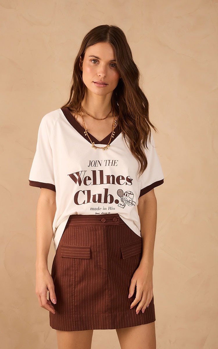 A t-shirt silk wellness club é estilosa, descontraída e incrível para deixar as produções mais criativas. Possui comprimento alongado, decote V e mangas curtas. Perfeita demais!