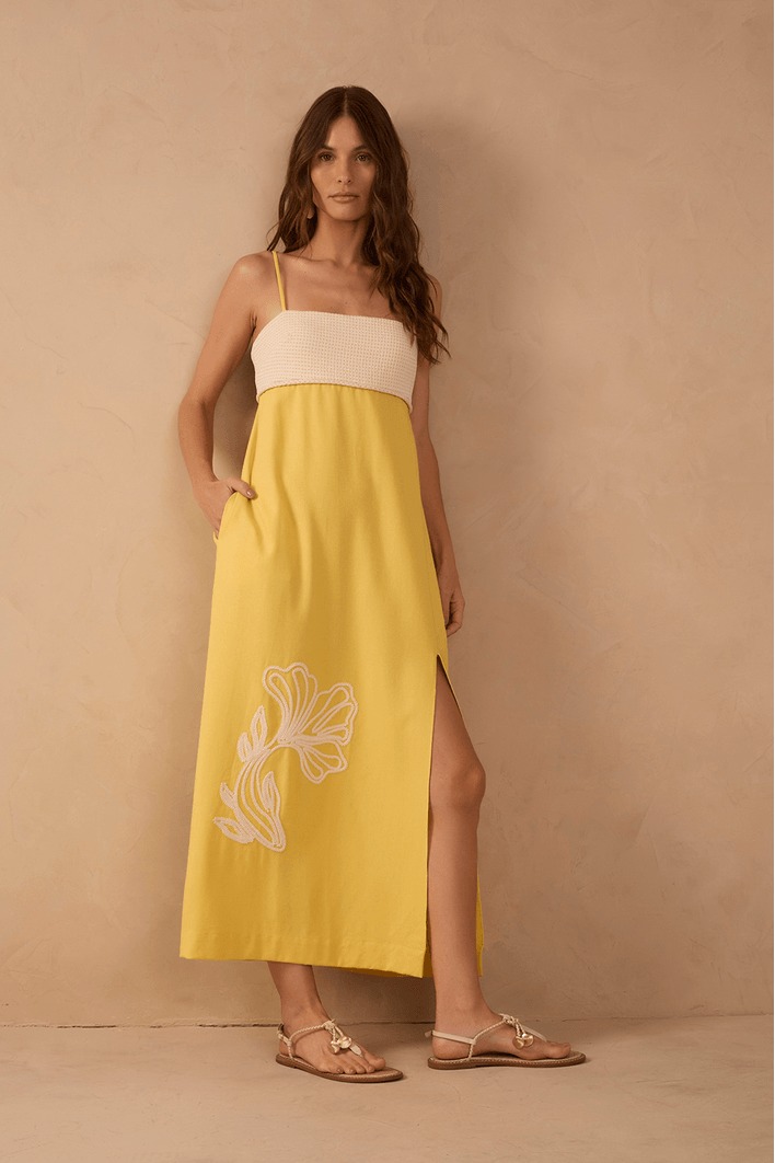 O Vestido Cropped Linho Bordado Peixe celebra a essência artesanal da Dress To. Feito em linho, traz bordados exclusivos inspirados no mar e modelagem leve que valoriza o movimento. Uma peça atemporal que une frescor, conforto e o charme dos detalhes feitos à mão.