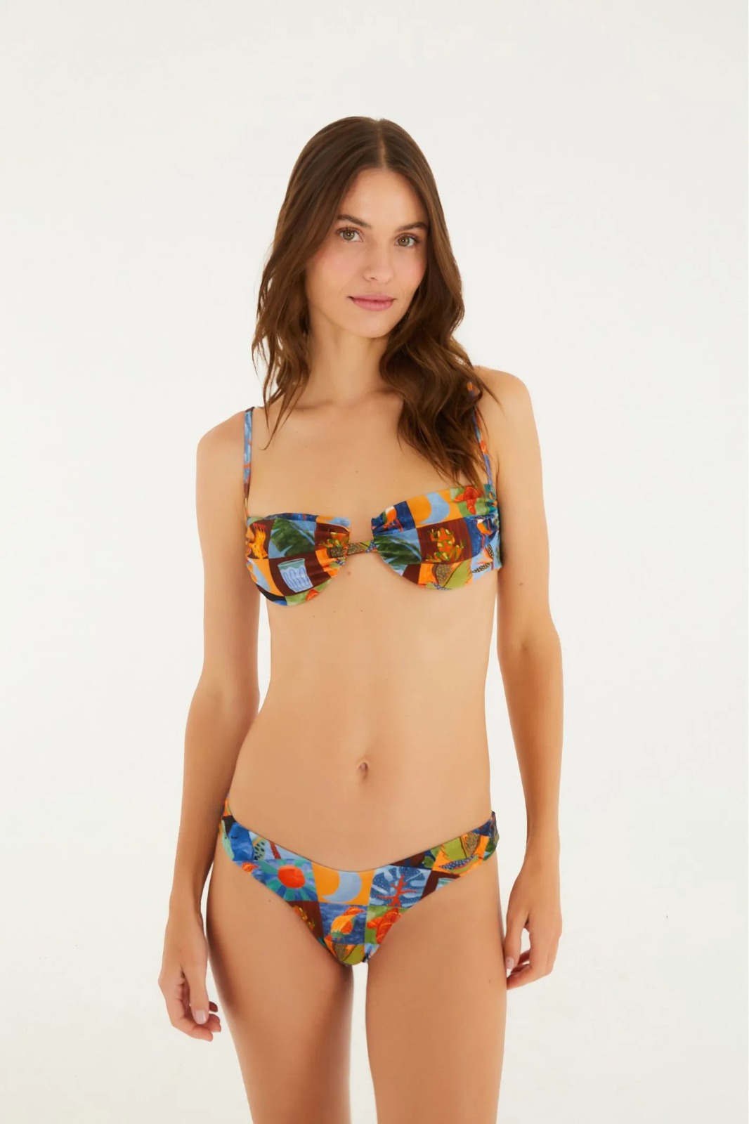 biquíni meia taça estampado lago do amor. o modelo exibe alças ajustáveis e fecho nas costas, oferecendo conforto e praticidade. a modelagem meia taça proporciona suporte e segurança, enquanto a calcinha de corte clássico completa o conjunto. ideal para momentos de lazer sob o sol, esse biquíni expressa a essência tropical de forma única. FARM RIO original - verão 26.
