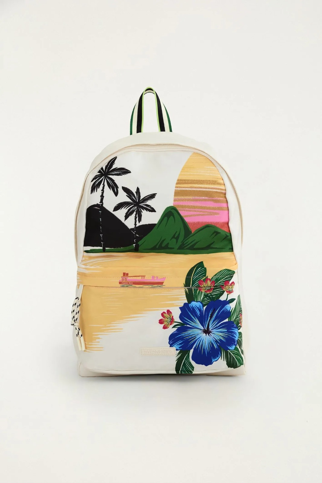 A mochila xodó é confeccionada em material resistente, formato retangular, compartimento interno amplo com divisória e forro, bolso frontal com fechamento em zíper, parte posterior em mesh acolchoado, alça fixa de mão em gorgorão com o nome da marca em baixo relevo, alças longas e reguláveis e fechamento superior por zíper.
