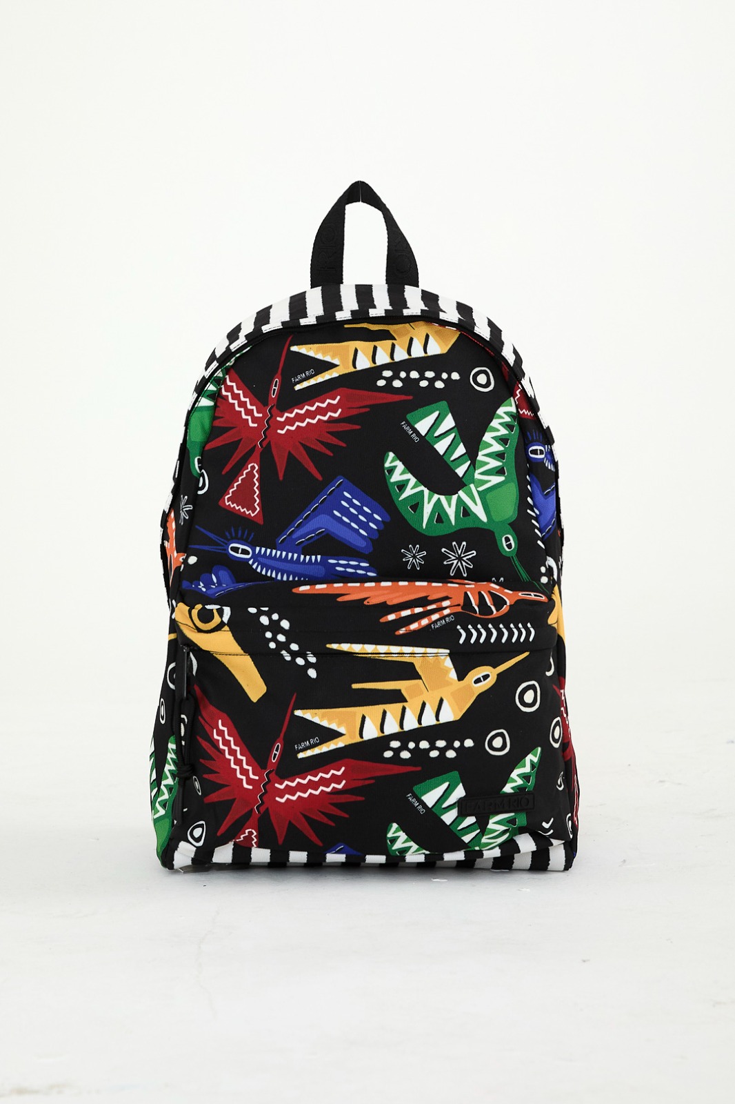 A mochila xodó é confeccionada em material resistente, formato retangular, compartimento interno amplo com divisória e forro, bolso frontal com fechamento em zíper, parte posterior em mesh acolchoado, alça fixa de mão em gorgorão com o nome da marca em baixo relevo, alças longas e reguláveis e fechamento superior por zíper.