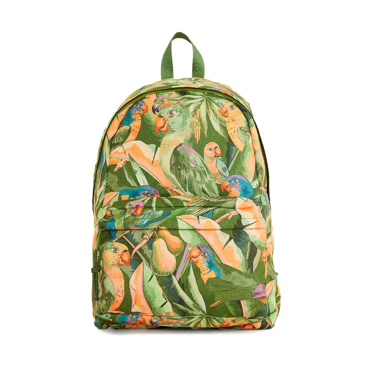 A mochila xodó é confeccionada em material resistente, formato retangular, compartimento interno amplo com divisória e forro, bolso frontal com fechamento em zíper, parte posterior em mesh acolchoado, alça fixa de mão em gorgorão com o nome da marca em baixo relevo, alças longas e reguláveis e fechamento superior por zíper.