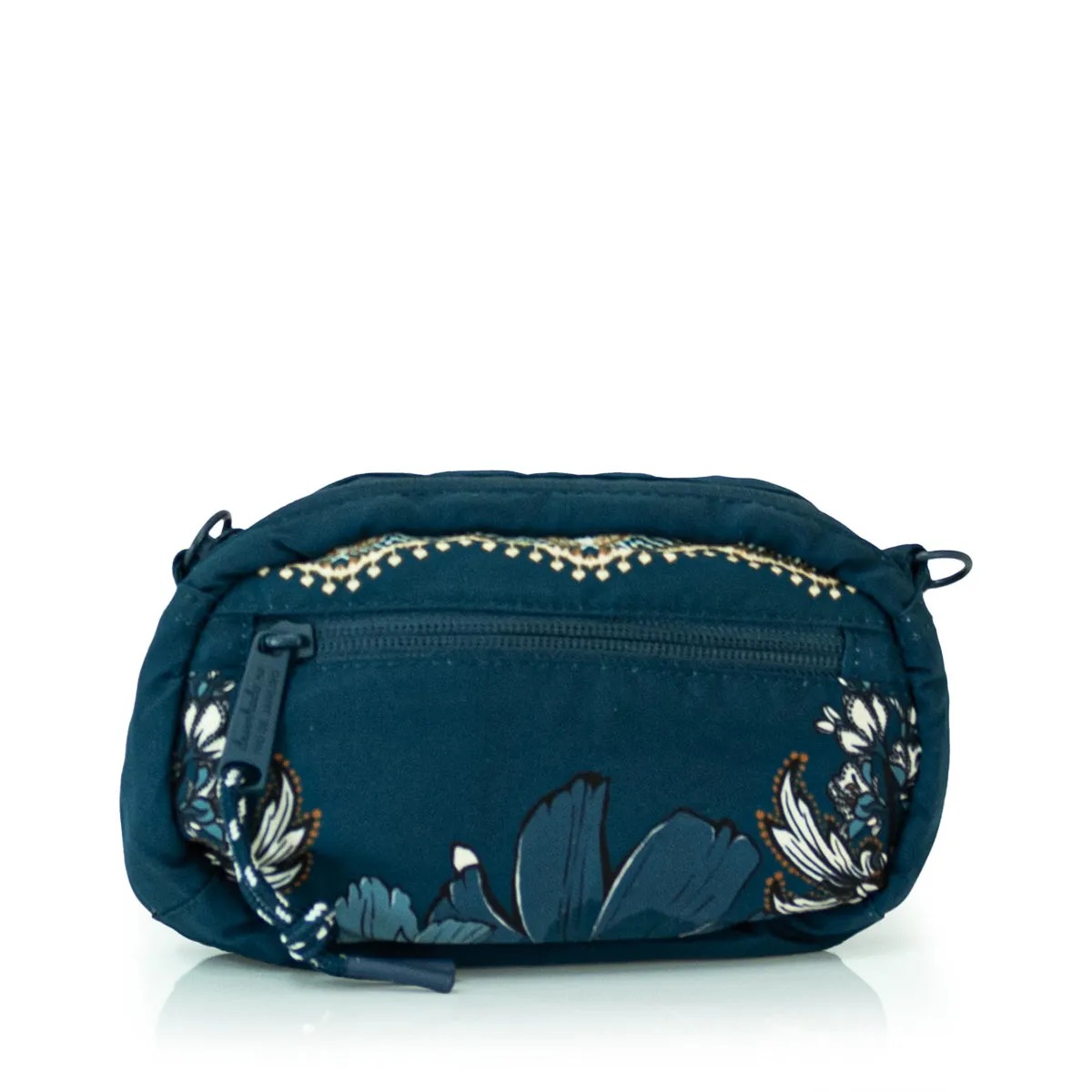 Confeccionada em poliéster leve, esta bolsa feminina pesa apenas aproximadamente 110g e apresenta um acabamento estampado na cor azul, adornada com o desenho de dálias que evoca a beleza e a sofisticação da natureza.