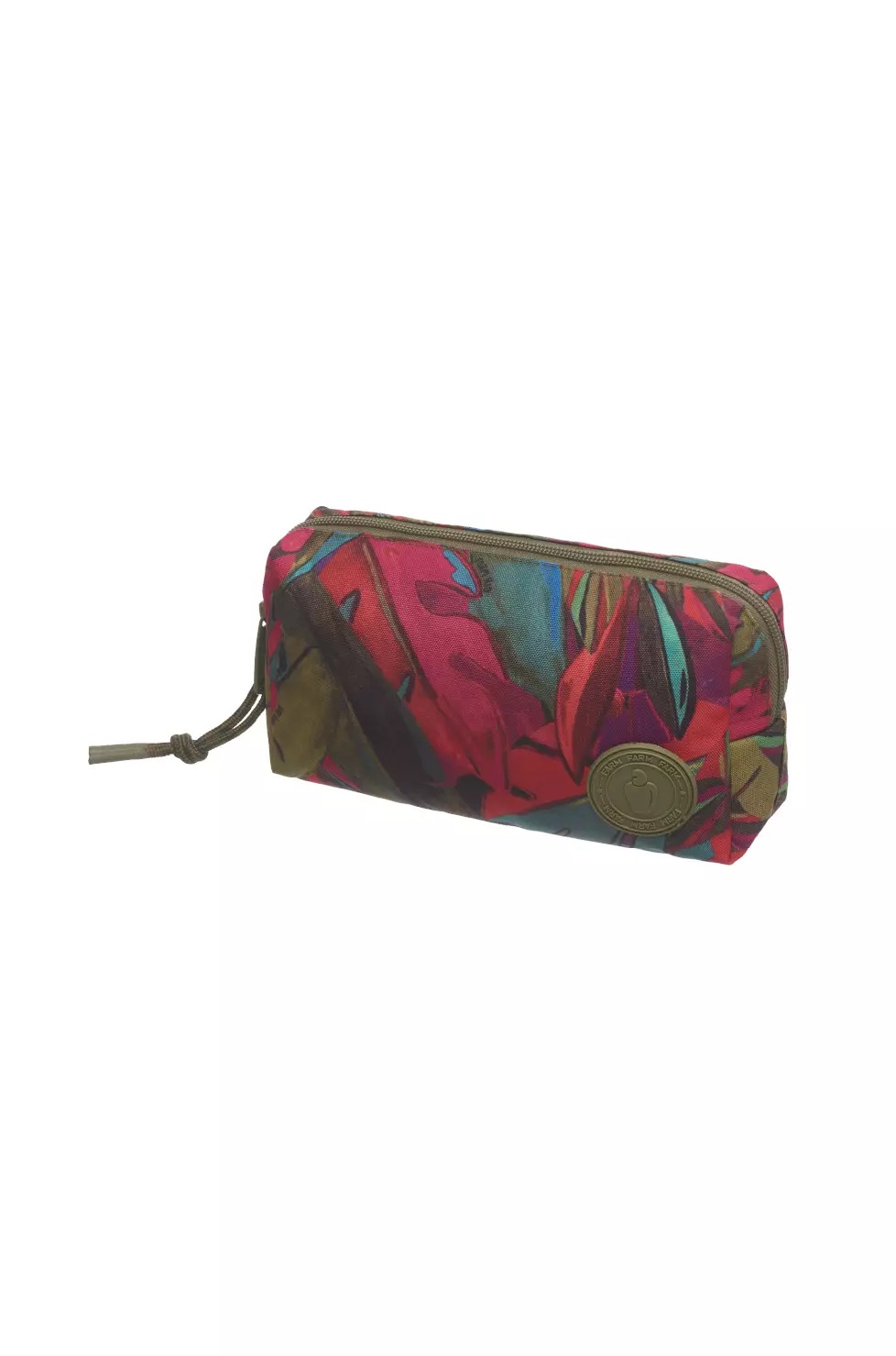 A nécessaire verde é produzida em poliéster. A peça possui tamanho pequeno, formato retangular, mix de estampas em cores contrastantes, compartimento interno com forro, tag da marca aplicada em borracha na parte frontal, acabamento pespontado e fechamento superior por zíper com puxador. A estampa colorida, traz elementos brasileiros da natureza que tornam a nécessaire ainda mais charmosa!
