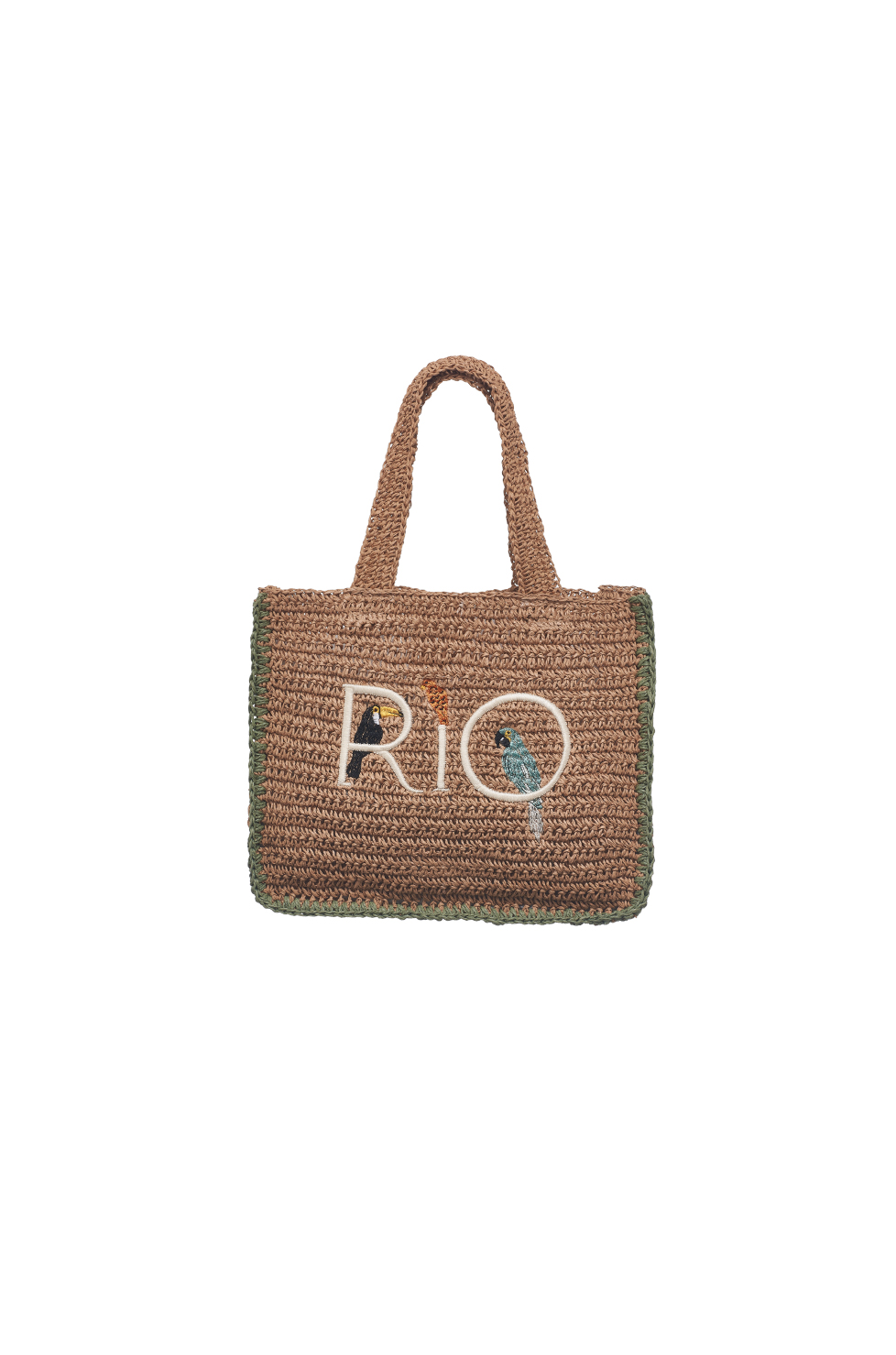 Bolsa RIO P . Essa bolsa traz o charme artesanal em cada fio trançado, com um toque tropical que celebra o espírito vibrante do Brasil. Com formato estruturado e amplo espaço interno, ela é perfeita para te acompanhar da praia à cidade. O bordado com a palavra "RIO" e os passarinhos tropicais adiciona personalidade e cor ao visual. As alças resistentes garantem conforto no uso diário. Um acessório FARM RIO original — Alto Inverno 25