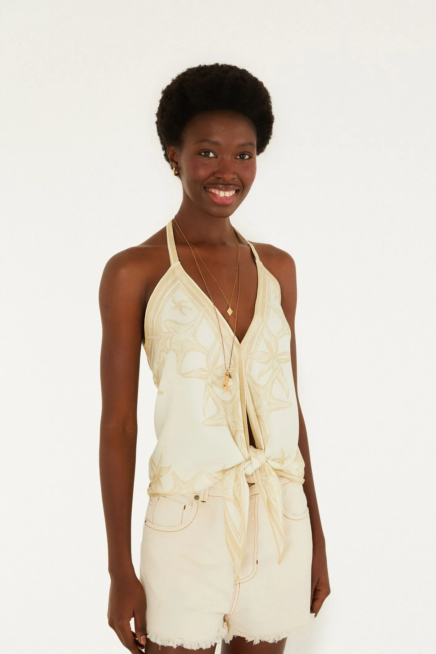 regata nó estampada mar de ondas. essa peça cativante é perfeita para dias ensolarados. com alças finas e decote ajustável com nó, ela se destaca pela modelagem leve e casual. ideal para passeios à beira-mar ou encontros descontraídos. a originalidade da FARM traduzida em cada detalhe. FARM RIO original - verão 26.