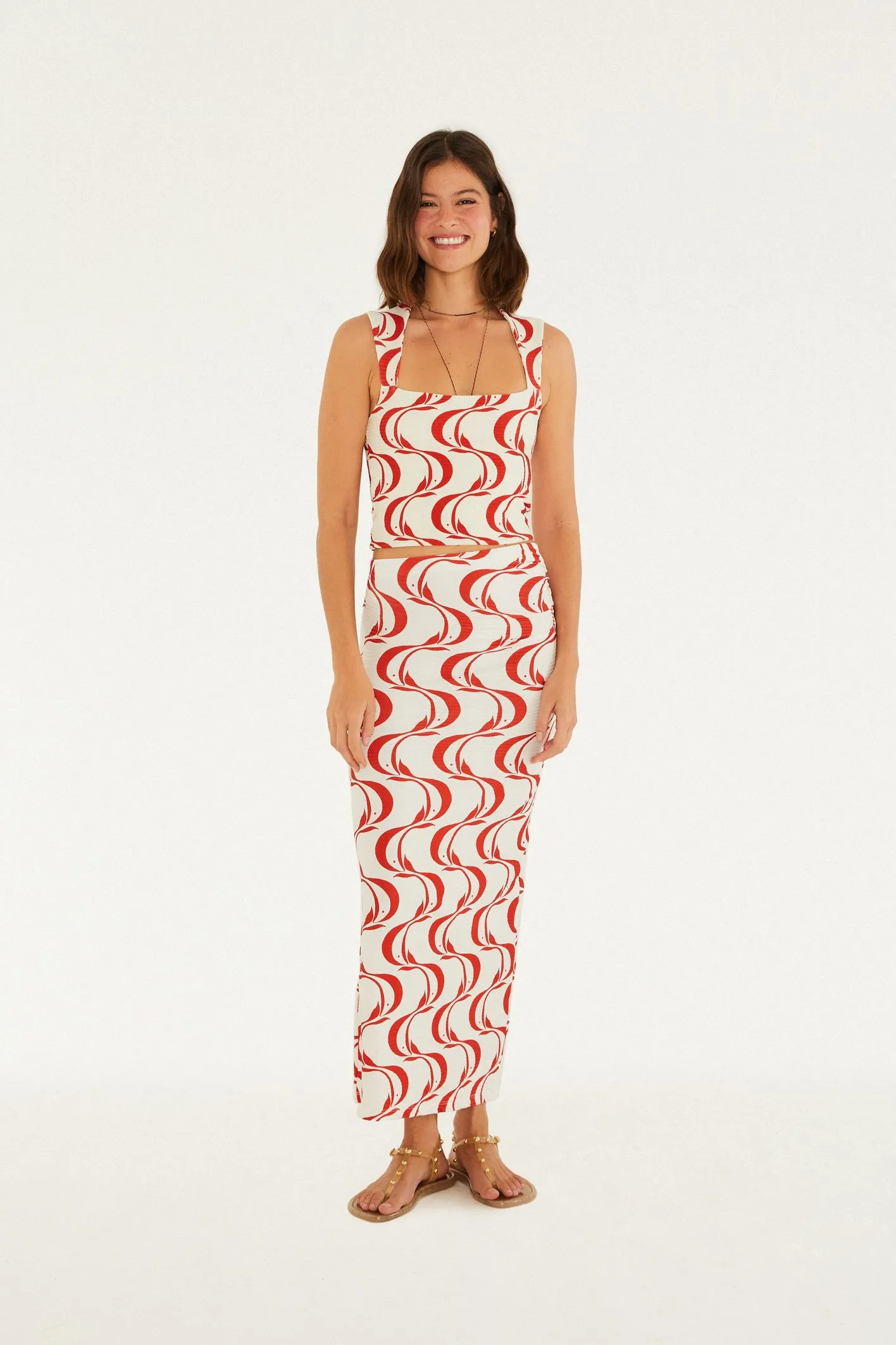 saia midi estampada peixe copa. uma peça que une charme e conforto, perfeita para trazer originalidade ao seu look. com cintura alta e comprimento midi, proporciona um toque casual e moderno. ideal para um passeio à beira-mar ou um encontro relaxante. FARM RIO original - alto verão 26.