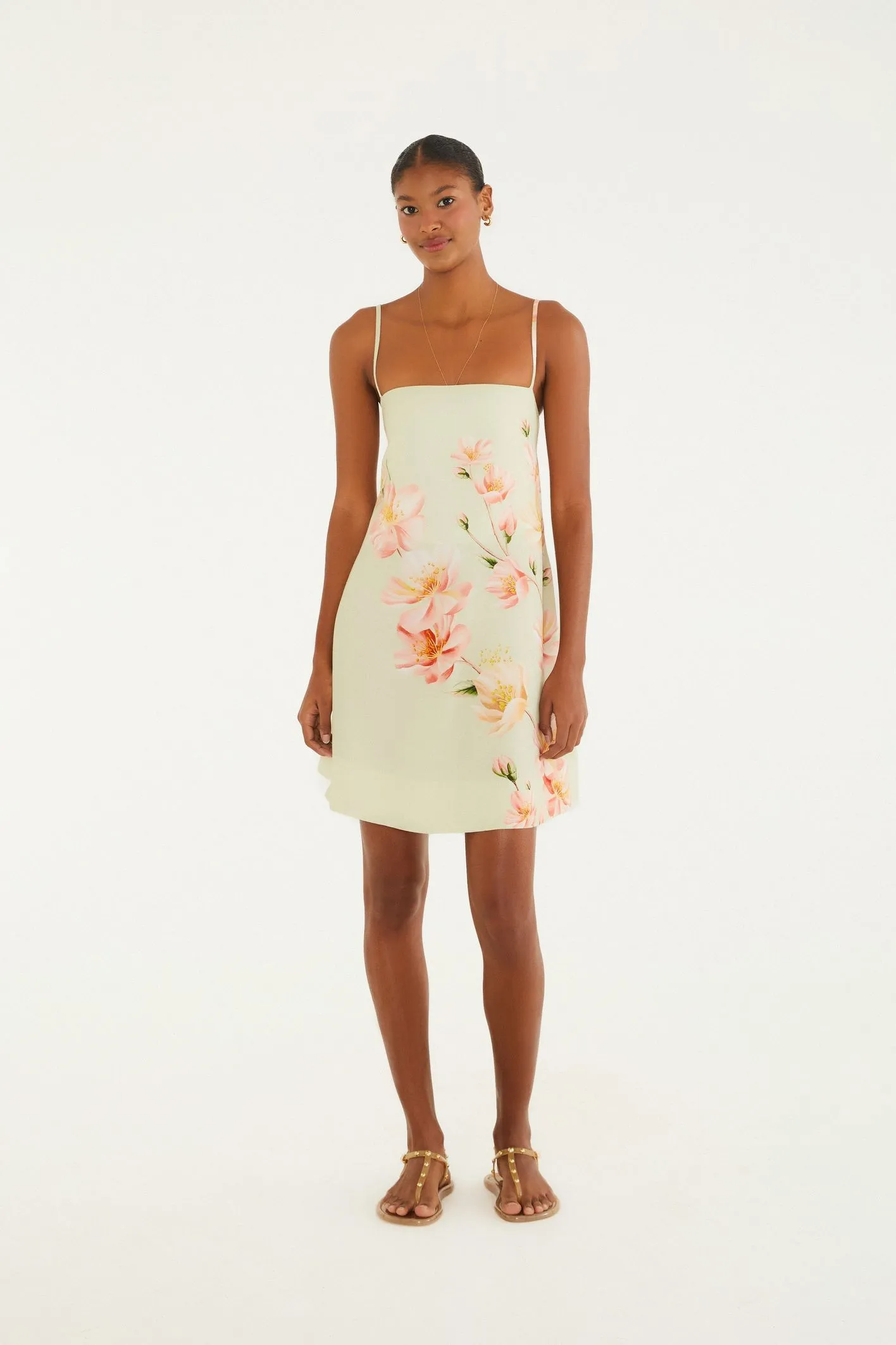 vestido curto estampado cerejeira. design minimalista sem mangas, alças finas e um toque de modernidade. a modelagem fluida proporciona conforto e leveza, ideal para dias de lazer ou eventos casuais. tecidos de alta qualidade garantem durabilidade e caimento perfeito. um convite a aproveitar os dias ensolarados com estilo. FARM RIO original - verão 26.