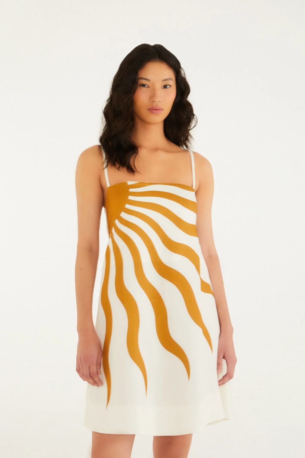 vestido curto estampado solare. com alças finas e modelagem reta, traz a leveza que o verão pede com seu corte que permite liberdade de movimentos. o charme singular está nos detalhes do caimento fluido e frescor do tecido, ideal para momentos casuais ou um passeio à beira-mar. FARM RIO original - verão 26.