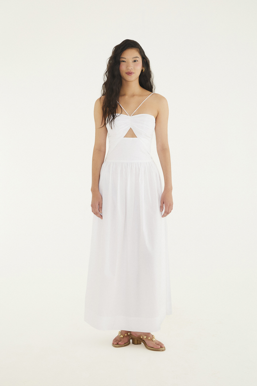 vestido detalhe amarração. com alças finas cruzadas e decote com corte triangular, este vestido longo traz um toque único e moderno. o detalhe de amarração nas costas eleva o charme da peça, que se adapta perfeitamente a ocasiões casuais ou encontros especiais. confeccionado em tecido leve para o máximo de conforto em dias quentes. FARM RIO original - alto verão 26.