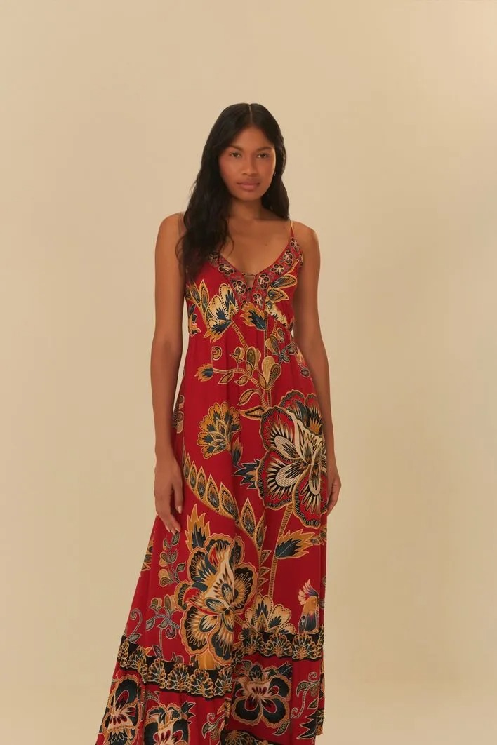FARM VESTIDO LONGO ALÇA ETAMPADO FLORAL PEQUIM