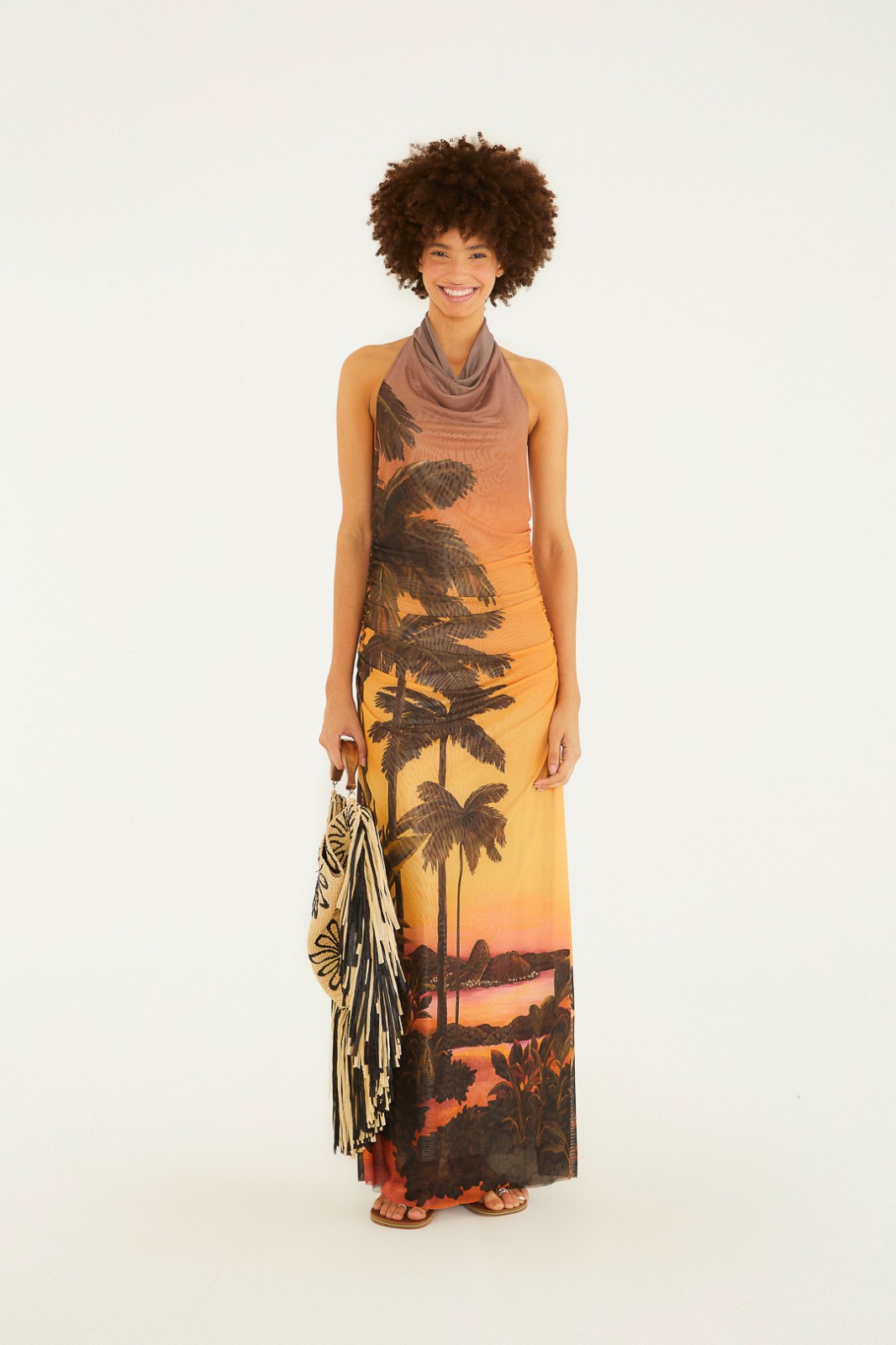 Vestido Tule Farm Degage Mirante: descubra a elegância do vestido longo com estampa inspirada na natureza, perfeita para quem busca um look sofisticado e confortável. Com decote degage e costas nuas, este modelo valoriza a silhueta feminina, transmitindo sensualidade com sutileza. O tecido leve e fluido acompanha seus movimentos, ideal para eventos ao ar livre, festas ou passeios ao entardecer. A estampa exclusiva com paisagem tropical em tons quentes cria uma conexão emocional com a energia do pôr do sol, destacando seu estilo único.