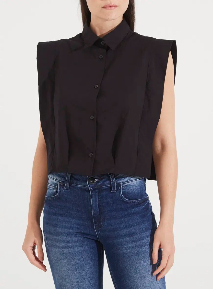 Design: Modelagem cropped com mangas curtas e ombros estruturados, que realça a silhueta feminina. Decote clássico com botões, que adiciona um toque de sofisticação à peça.