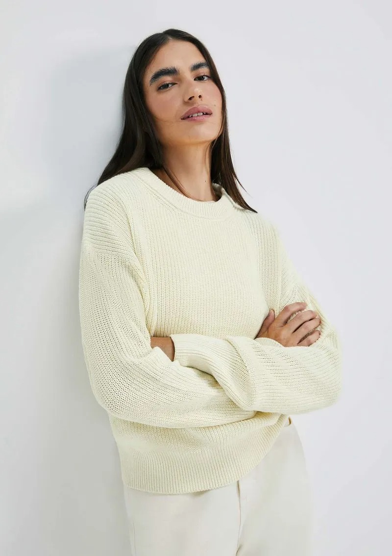 Blusão Feminino Em Tricô de Algodão, a peça chave do guarda-roupa feminino. Com silhueta reta e decote redondo, é o item perfeito para compor seus looks de inverno com muito estilo e conforto.