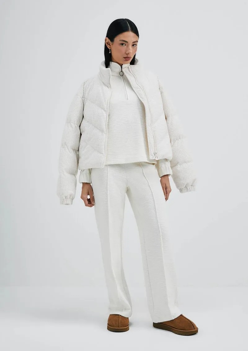 Calça feminina slim em malha bouclê de alta qualidade, oferecendo conforto o dia todo. Detalhes elegantes como cós largo e nervuras nas pernas adicionam charme ao visual. Peça indispensável para seu guarda-roupa, unindo estilo e conforto de forma excepcional.