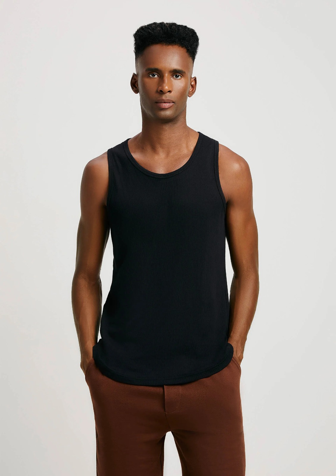 Regata básica masculina slim em ribana, tem o estilo clássico para usar todos os dias da semana. Elaborada ribana canelada de algodão, possui modelagem slim com caimento perfeito, além de gola redonda e cavas no lugar.