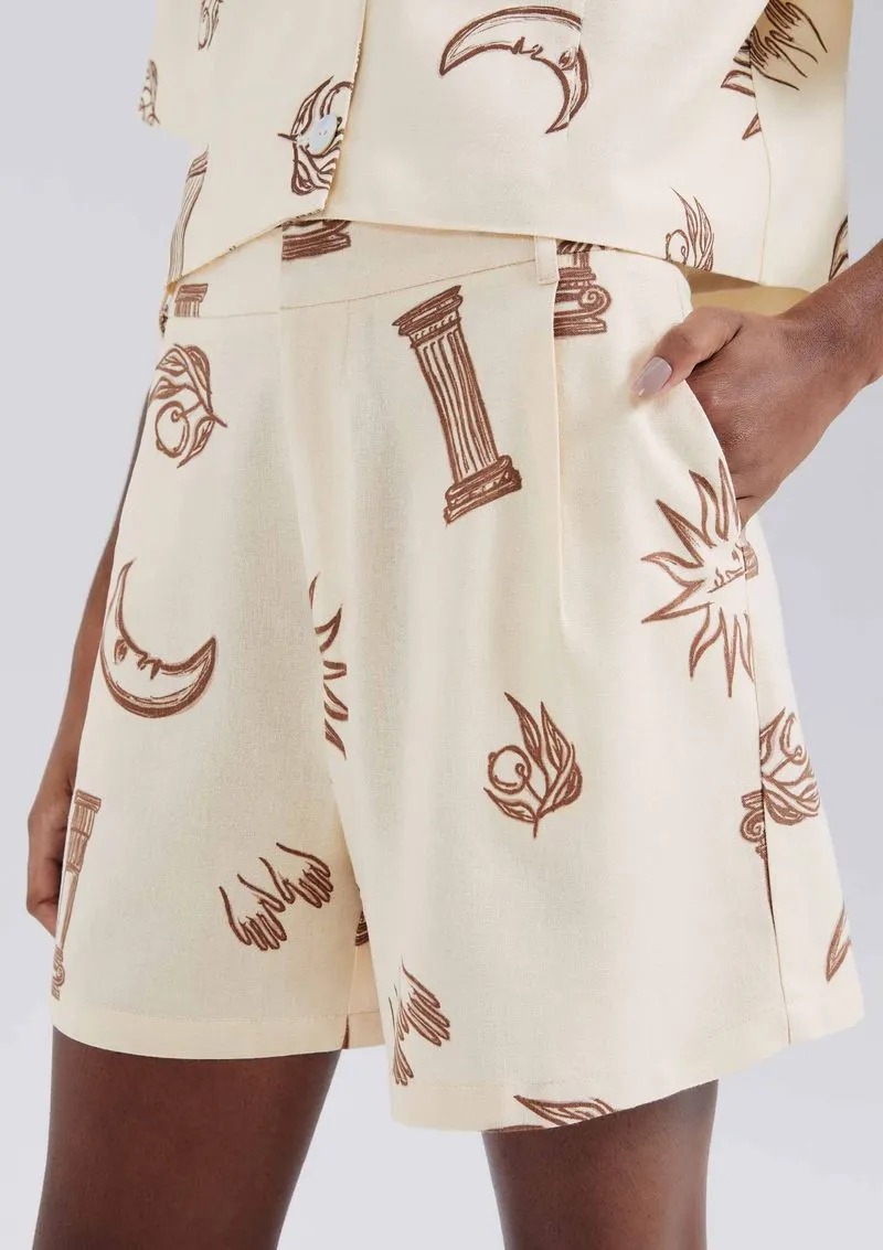 Conheça nosso shorts estampado em alfaiataria de linho, que une conforto e estilo com elegância. O design moderno e a estampa vibrante tornam essa peça perfeita para dias quentes.