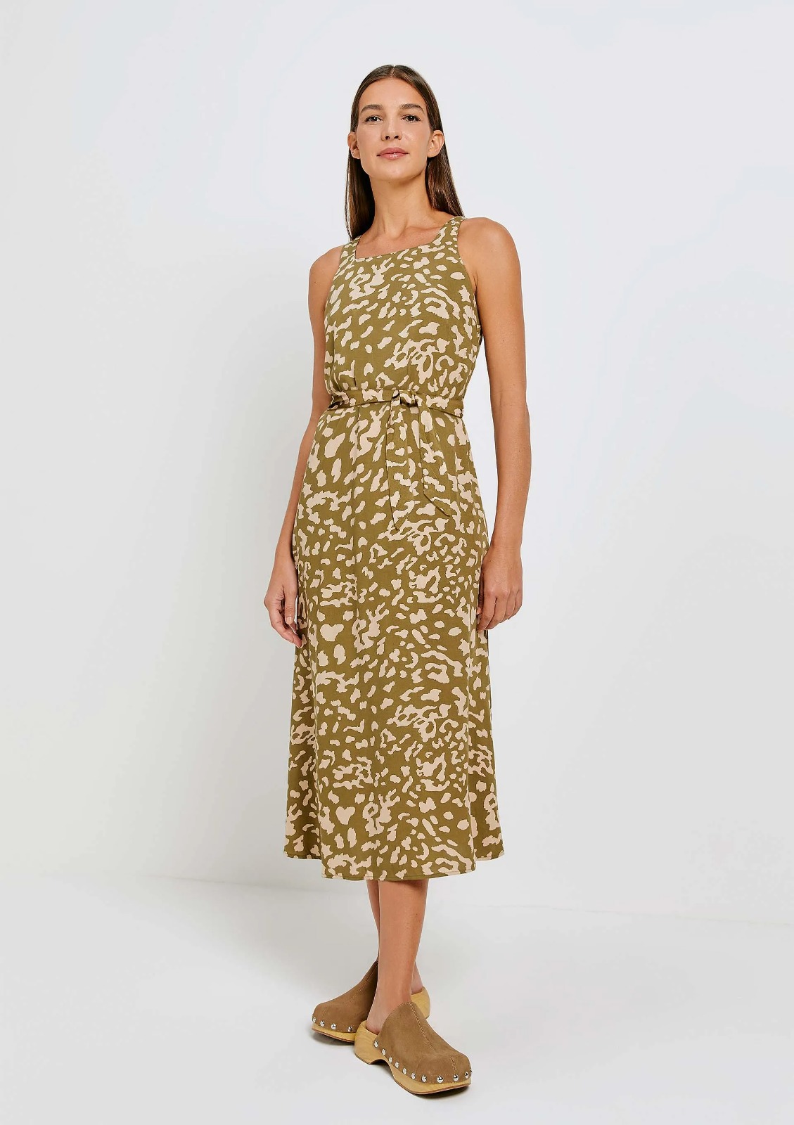 Vestido midi estampado elaborado em tecido plano de viscose, que oferece toque suave e ótimo caimento. A peça acompanha faixa no tecido do corpo que possibilita duas formas de uso, com a cintura mais marcada utilizando a faixa como cinto ou sem, como você preferir!