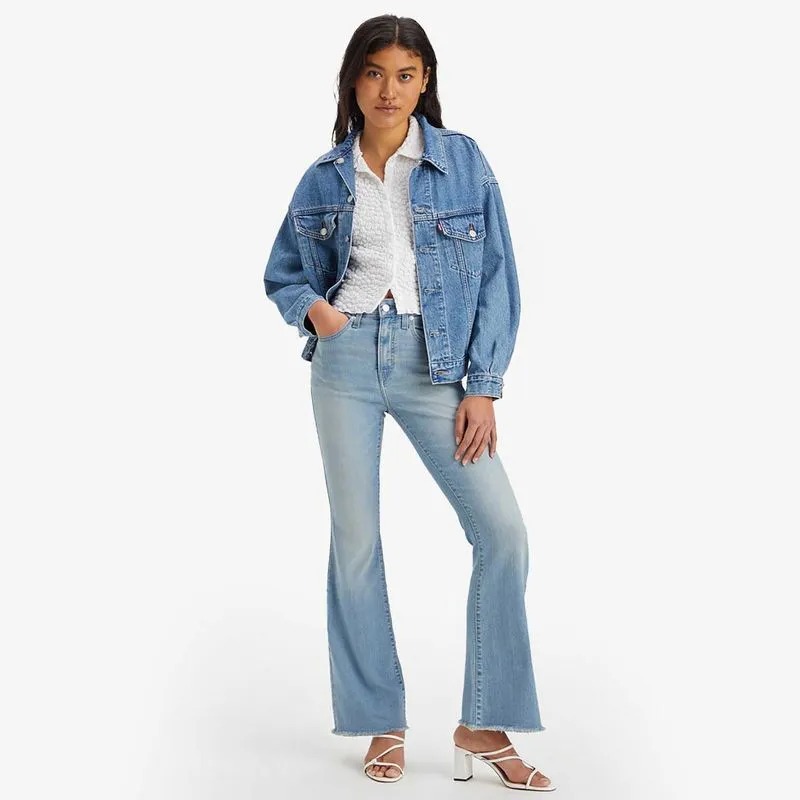 Jeans 726, fáceis de usar com cintura alta moderna, ela valoriza sua cintura além de criar uma silhueta alongada e elegante para seus looks. Eles têm cintura alta, com caimento justo nos quadris e coxas e pernas flare.