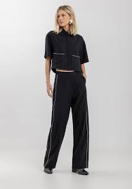 As delicadas listras laterais desta calça de alfaiataria adicionam um toque sutil de estilo ao seu visual. Sua modelagem reta é versátil e se adapta facilmente a diferentes ocasiões. Combine com camisa cropped.