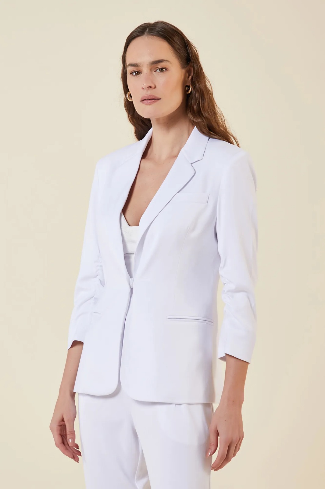 O Blazer possui mangas 7/8 com franzimentos, fechamento frontal por maxi botão e detalhes em bolsos frontais. Uma peça elegante e versátil, perfeita para ser usada como terceira peça e transformar o seu look em ainda mais sofisticado.