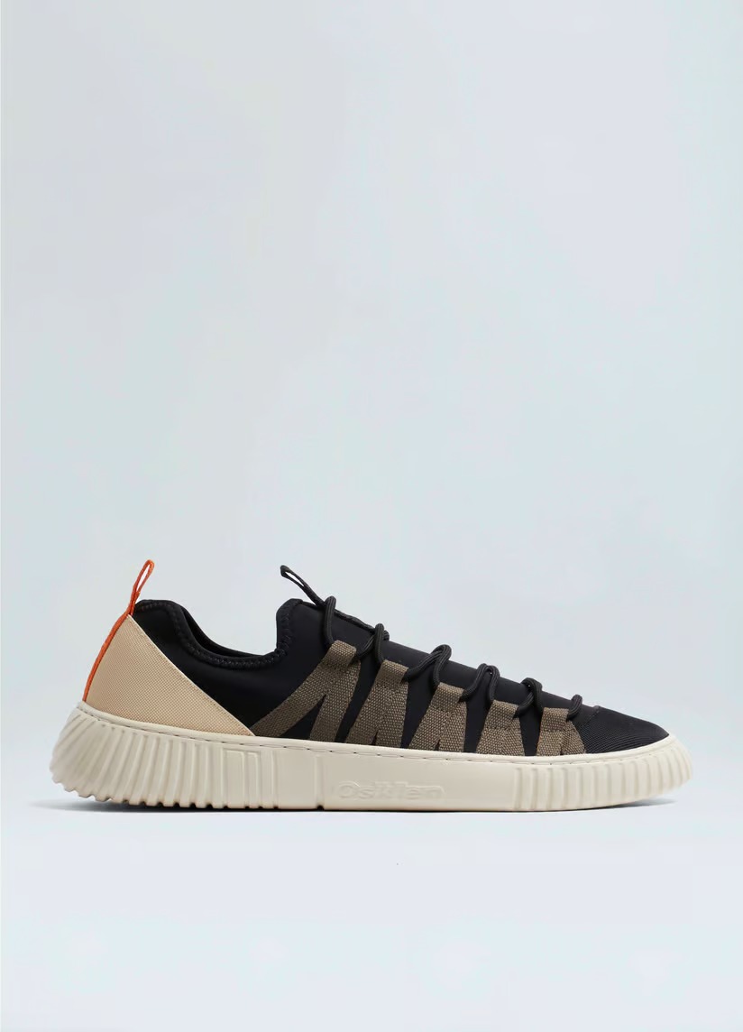 Tênis arp(x) em material elástico com recortes de borracha texturizada no bico e na traseira. modelo de amarração com cadarço de corda esportiva. forro parcial e palmilha em couro bovino. solado de eva costurado ao cabedal com design exclusivo osklen, produzido com mais de 70% de carbono de base biológica, oriundo da cana de açúcar plantada e cultivada no brasil. produto regenerate life.