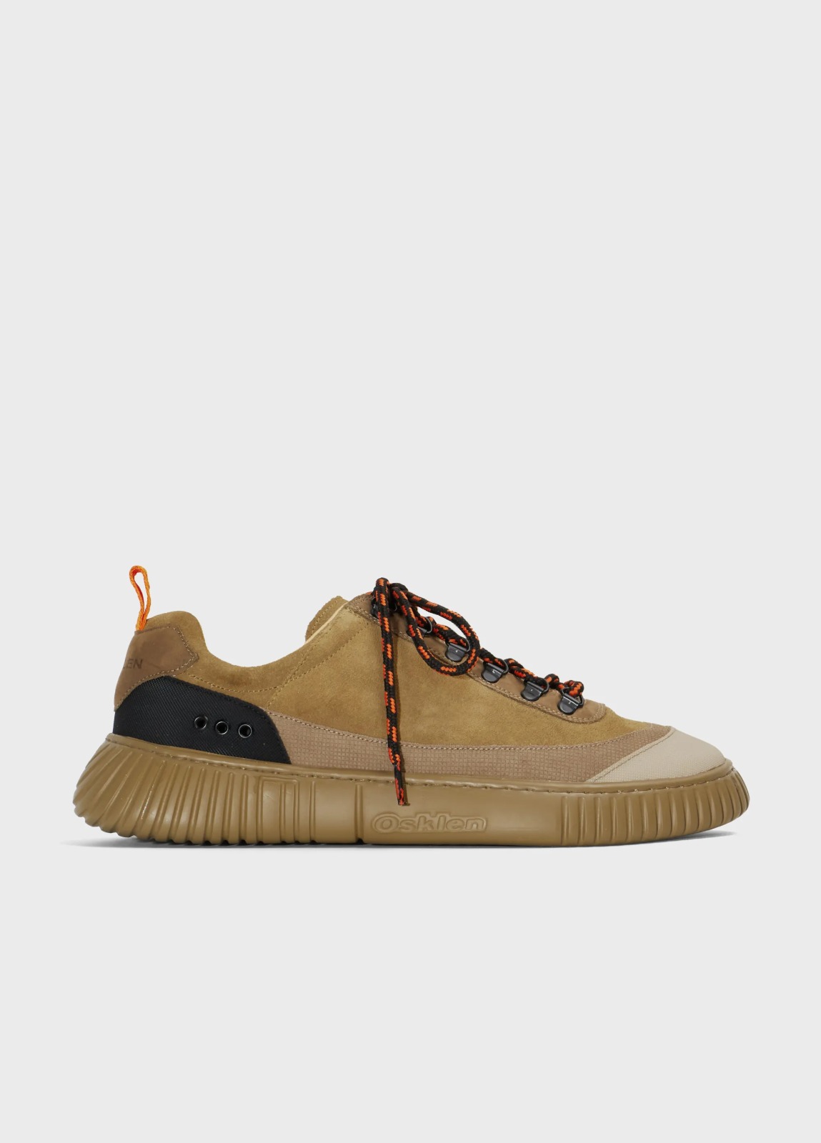 Tênis Arp(X) em camurça bovina com detalhes em couro bovino. Modelo de amarração. Forro e palmilha em couro. Solado de EVA costurado ao cabedal com design exclusivo Osklen, produzido com mais de 70% de carbono de base biológica, oriundo da cana de açúcar