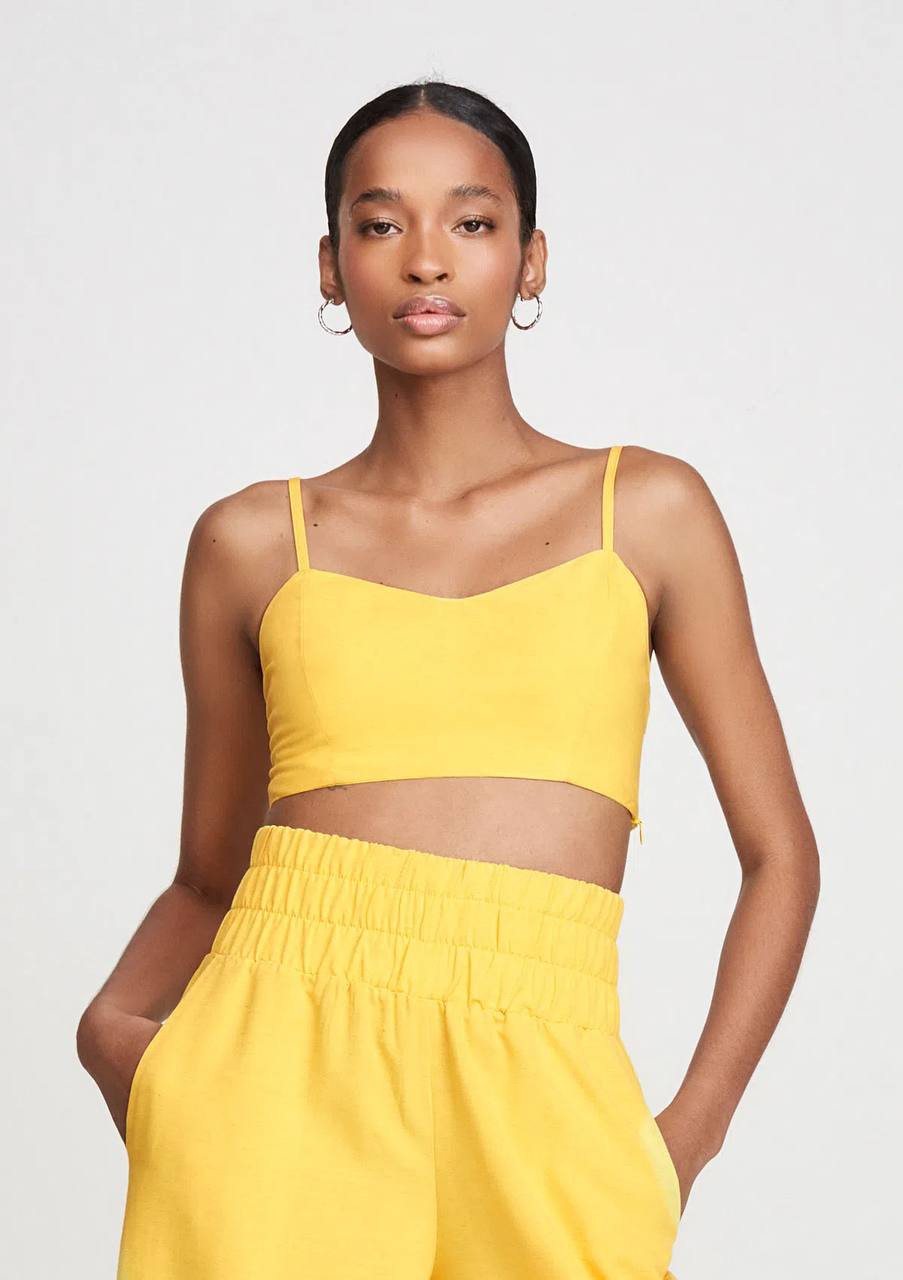 Uma peça que encanta e compõe lindamente qualquer look, desde os mais simples aos mais elaborados com saias fluidas e acessórios. Esse top feminino é confeccionado em linho e viscose, com um ótimo caimento e alta durabilidade. Seu shape é ajustado ao corpo com comprimento cropped. E exibe ainda decote levemente em V, alças finas com regulador e argola, costas em látex, zíper invisível lateral para fechamento e é uma peça totalmente forrada. DZARM, a moda que cabe na sua vida!