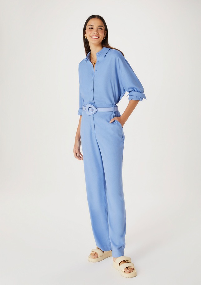 Calça Feminina Reta Cintura Alta Em Linho. Elaborada em tecido plano de linho e viscose. Conta com cintura alta, cós alfaiatado, abertura de botão frontal, passantes, bolsos faca frontais e bolsos embutidos nas costas. Modelagem com pernas levemente soltas do corpo.