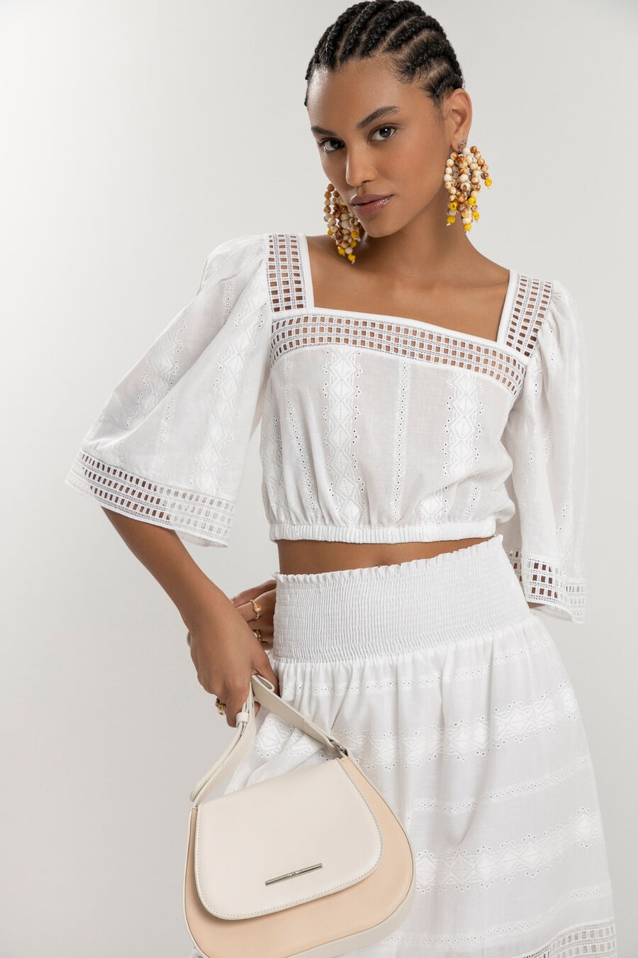 Beleza em cada detalhe, essa blusa em tecido com bordado minucioso traz consigo toda a delicadeza e sofisticação que a mulher Lez a Lez merece. Com decote quadrado e mangas flare, é uma peça única e especial, perfeita para combinar com uma calça de alfaiataria para um look elegante.