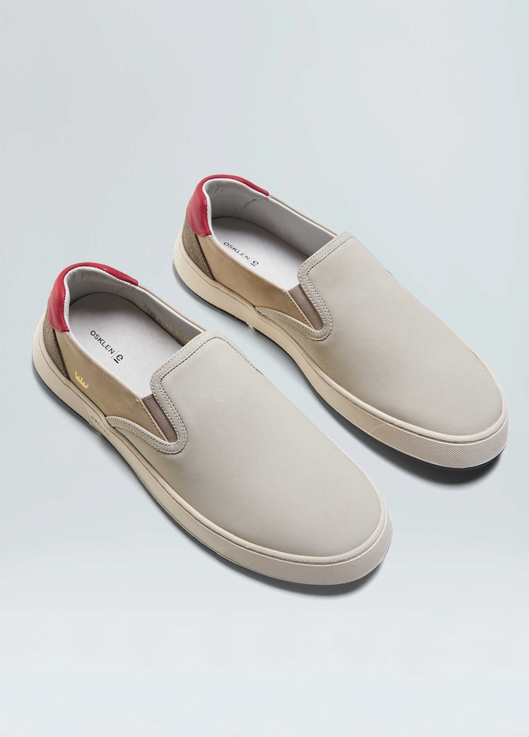 Tênis soho bossanova em couro bovino. Modelo slip on com elásticos para facilitar o calce. Forro e palmilha em couro bovino. Solado de borracha costurado ao cabedal com design exclusivo osklen. Produto re-design waste. A partir do inverno 21 o solado passou a ser produzido com no mínimo 10% de material reciclado