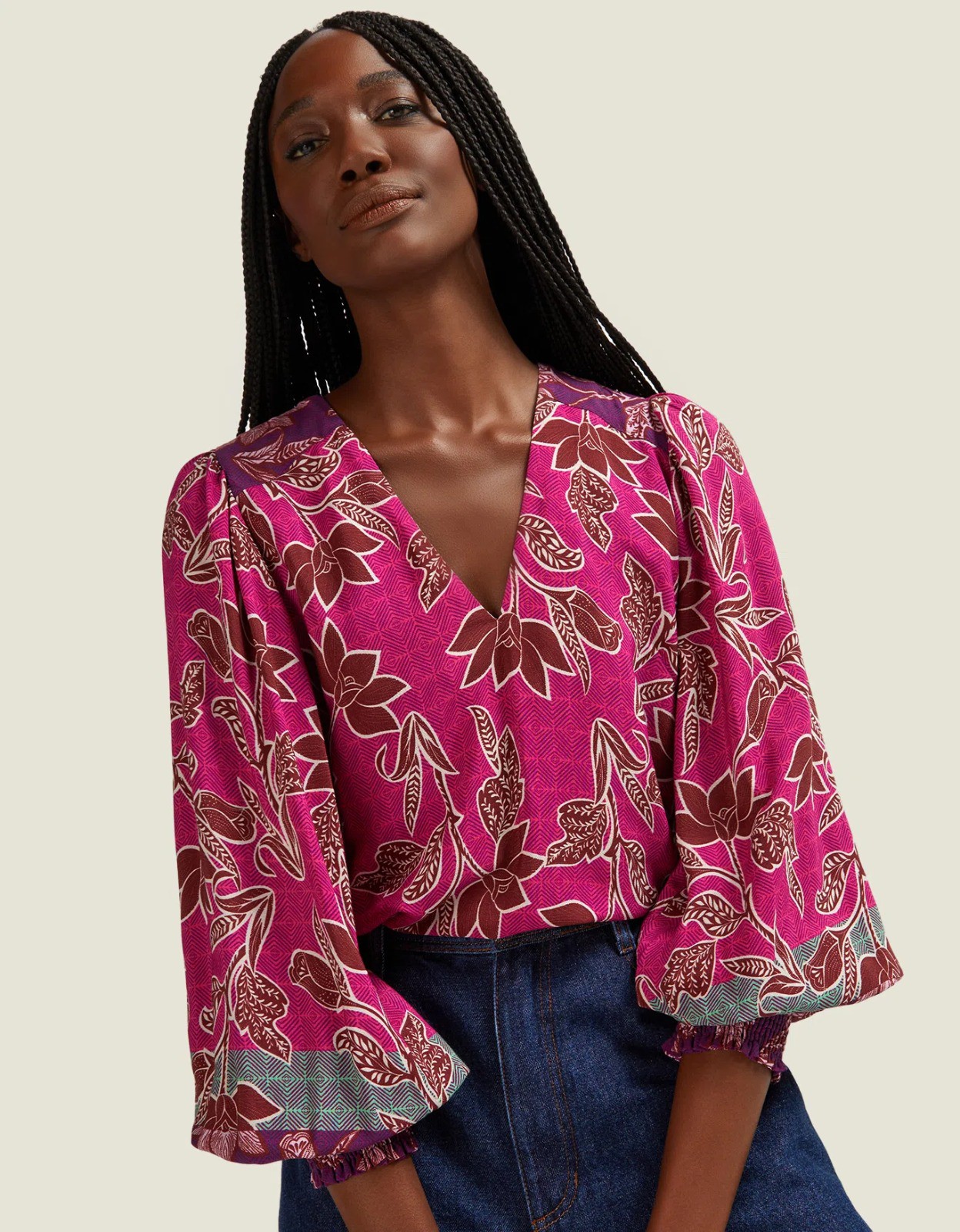 SHOULDER BLUSA BARRADO FLORAL ORQUIDEA