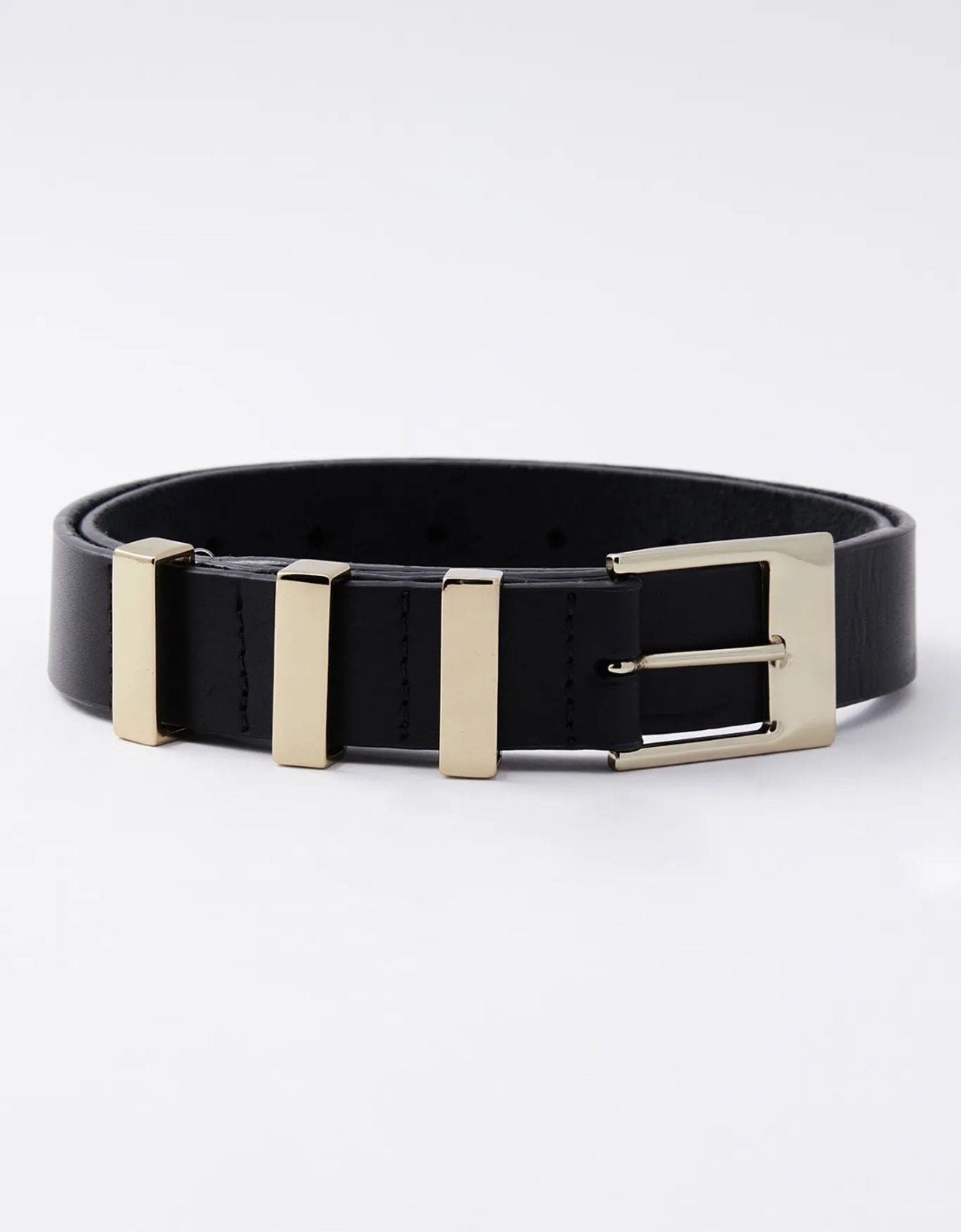 fivela retangular em metal com passante triplo em banho dourado