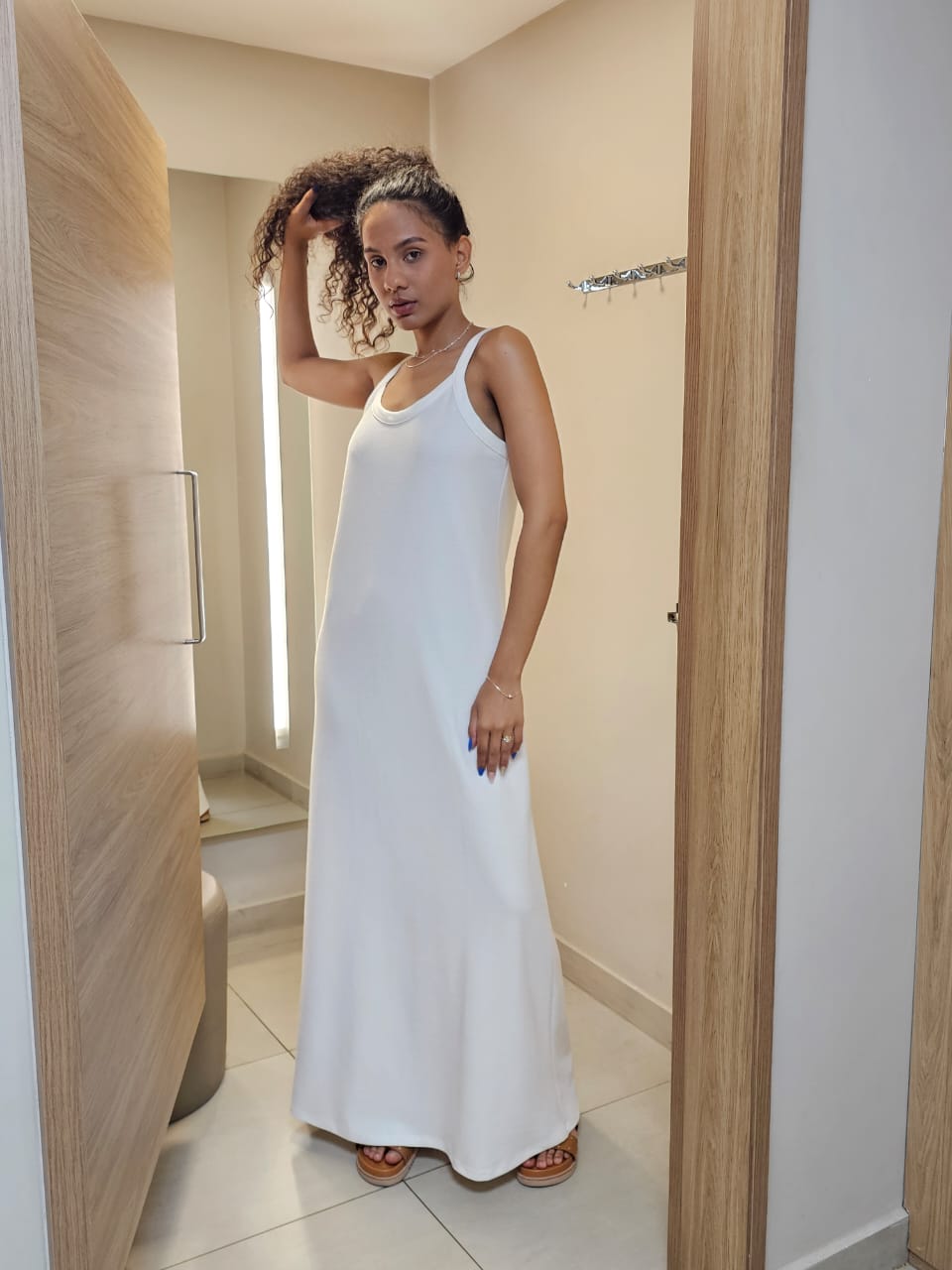 Vestido: Decote e cavas com acabamento em debrum formando alças, barra com acabamento tradicional.Tecido: Confeccionado em algodão e poliéster, um tecido leve e fluido que proporciona conforto e caimento impecável.Detalhes: O evasê adiciona um toque de sensualidade e sofisticação ao vestido.