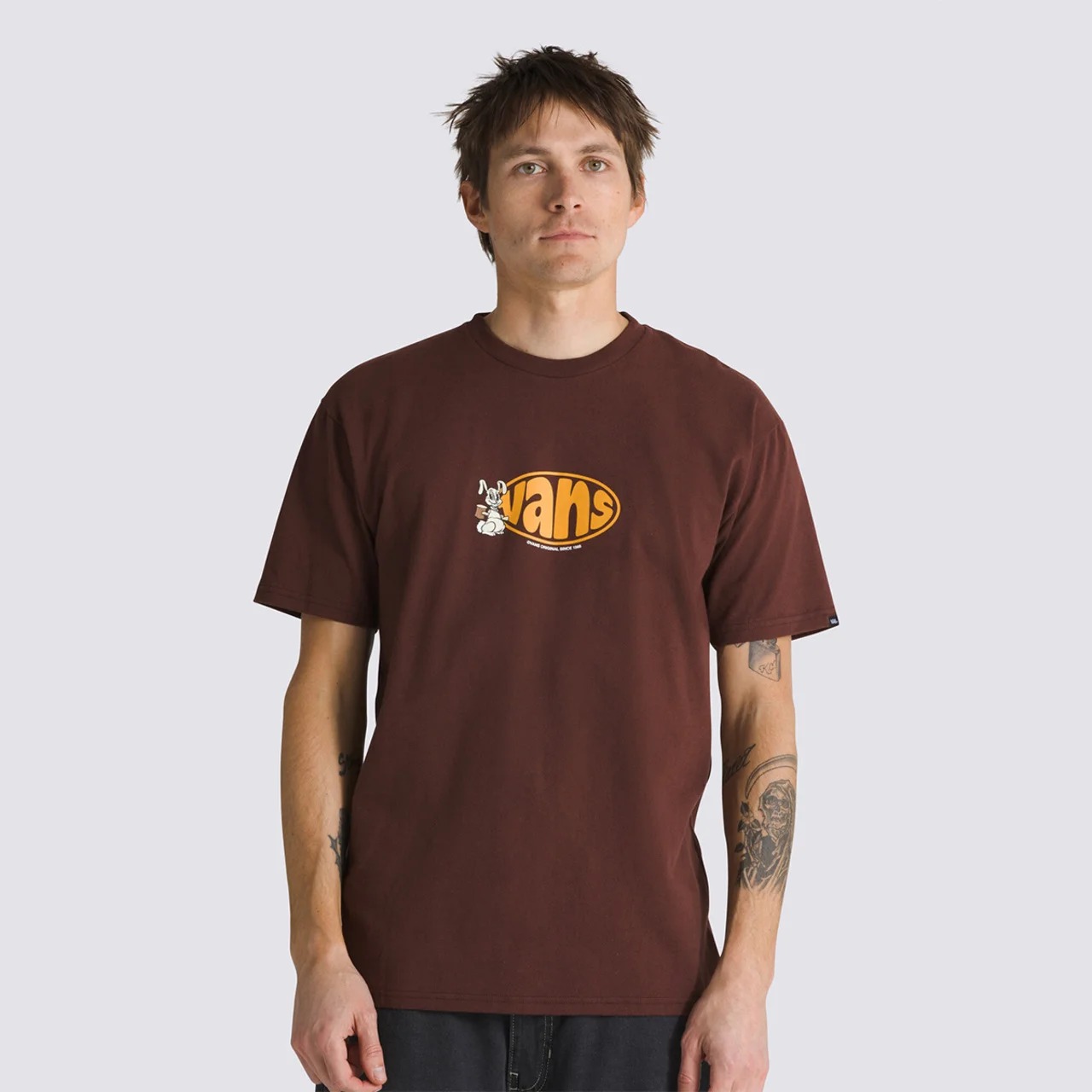 Arte e cultura de rua trazem referências icônicas para as peças clássicas da Vans. Confortável o bastante para usar todos os dias, a Camiseta Hopper Ss Bitter Chocolate com um toque descontraído, o modelo traz estampa frontal na altura do peito, de um coelho segurando um martelo, com assinatura vintage Vans®, em silk à base d’água. Em algodão, a camiseta de manga curta marrom possui gola redonda e aplicação de etiqueta tecida Vans® na manga.