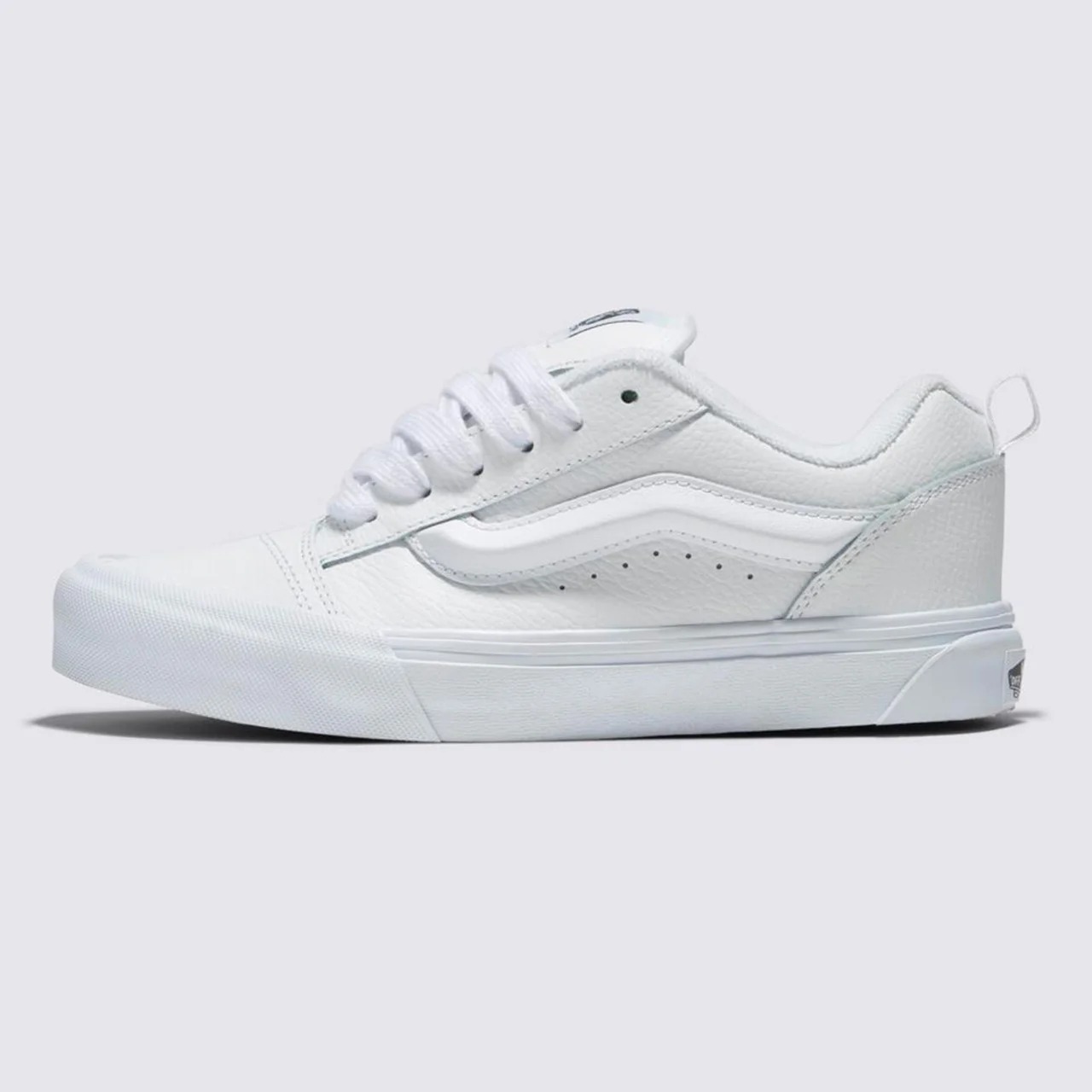 Com inspiração no estilo “volumoso” típico dos anos 90, o Knu Skool é a interpretação contemporânea do estilo clássico de uma década que representa o cenário do skate. Caracterizado por sua lingueta volumosa e Sidestripe Vans moldada em 3D, o Tênis Knu Skool Leather True White traz o acabamento marcado por cadarços oversized e robustos. Apresenta heeltab do skate tradicional com inscrição Vans em “Drop V” e “Off The Wall” aplicada no calcanhar, com etiqueta tecida “Vans Off The Wall” aplicada na lingueta.Com perfil marcante e detalhes em estilo dramático dos anos 90, esse tênis lendário brinca com o original Old Skool, reverenciando um ícone do passado com as tendências do presente.